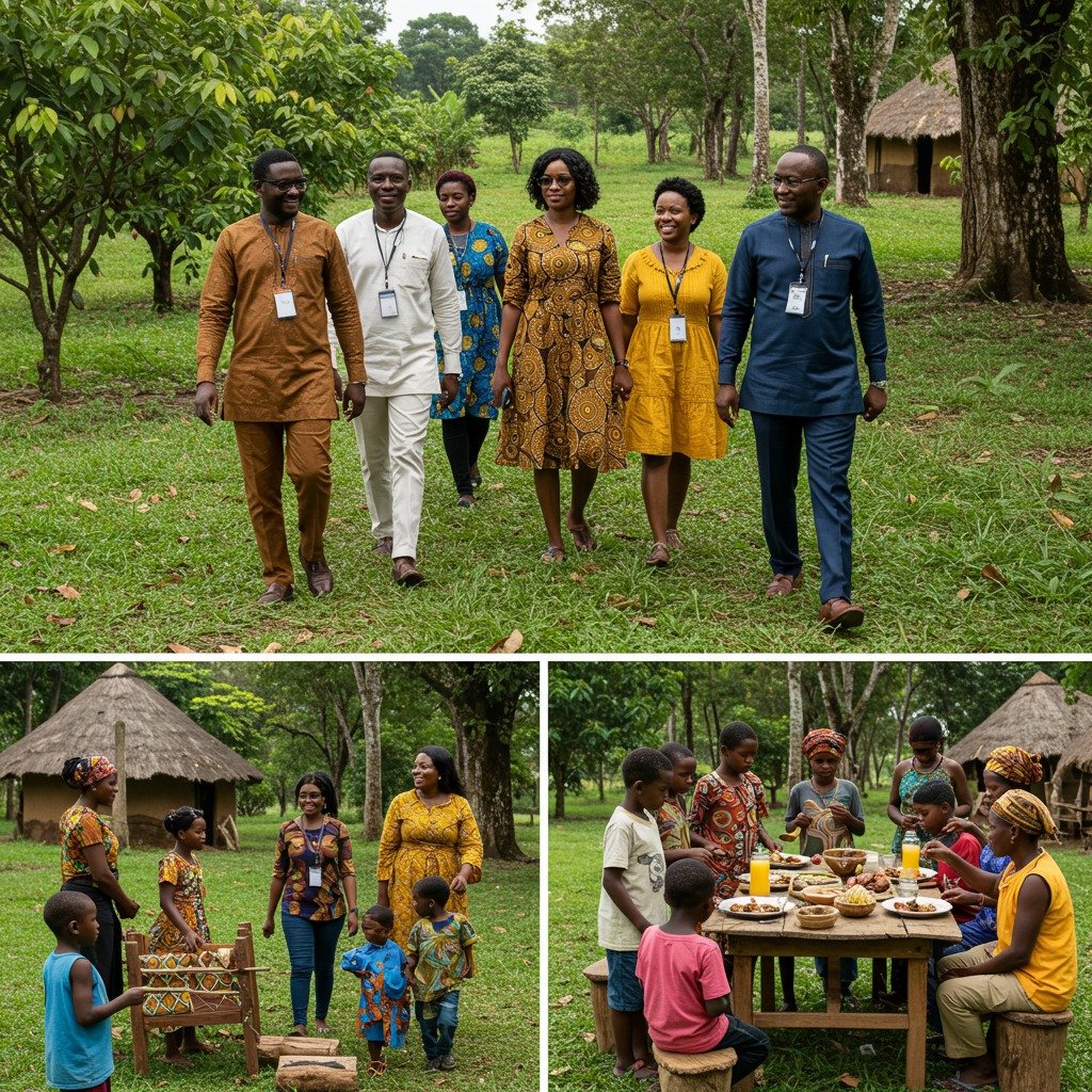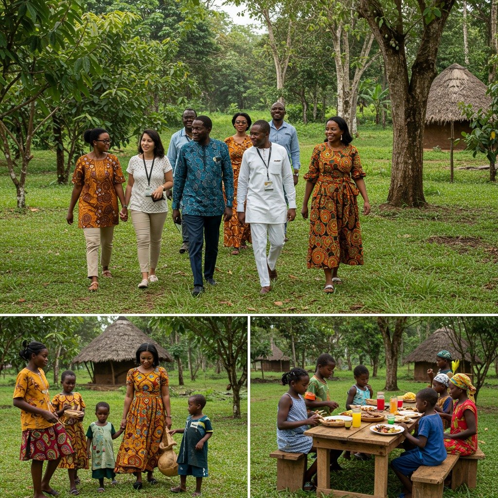 Explorez la forêt ivoirienne et plongez dans une nature préservée. Entre plantations, rivière et jeux traditionnels, terminez par un festin local aux saveurs authentiques qui éveillent vos sens.