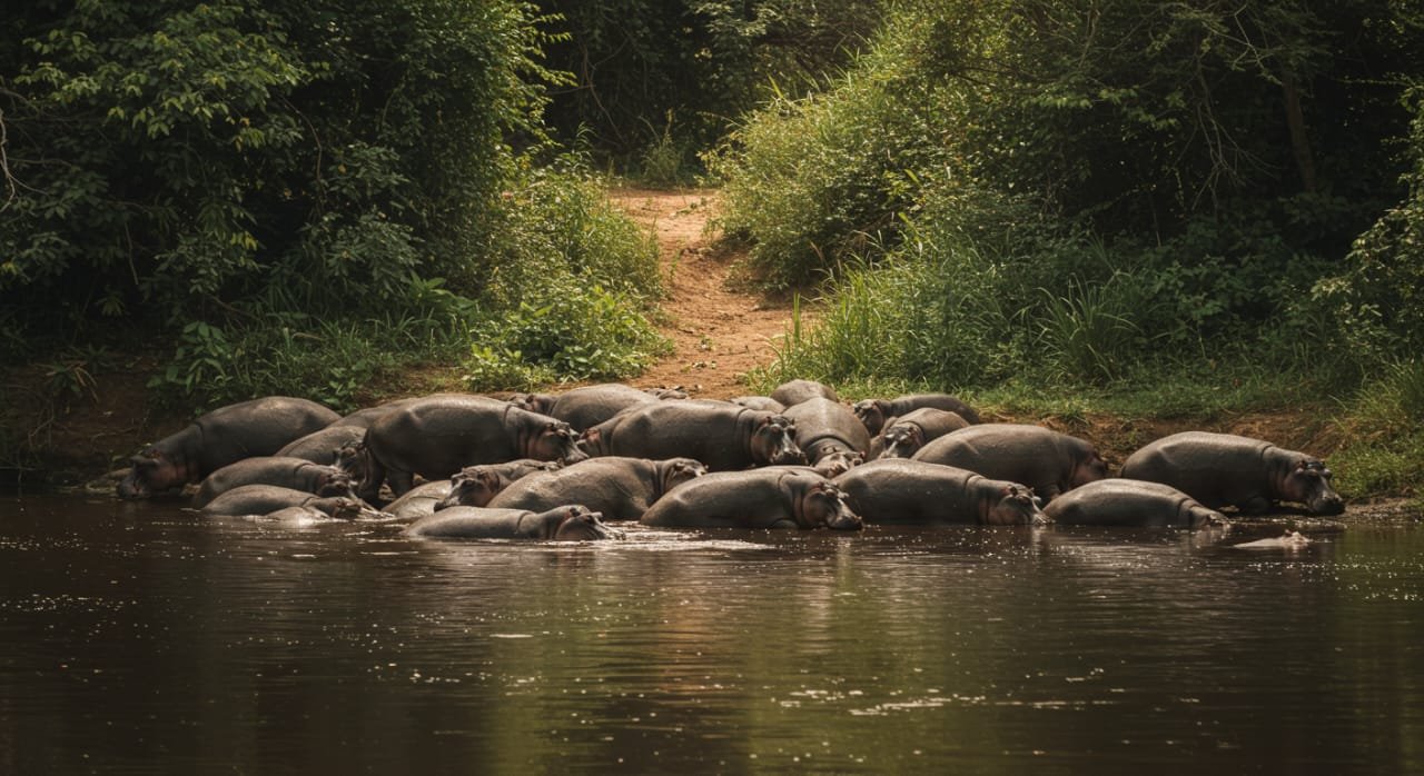 Explorez la nature lors d’une randonnée guidée à la rencontre des hippopotames du Bandama. Savourez un festin traditionnel aux saveurs locales avec poisson fumé, écrevisses et boissons artisanales. Terminez la journée par des jeux traditionnels, du tir à l’arc et un repos bien mérité dans un hamac